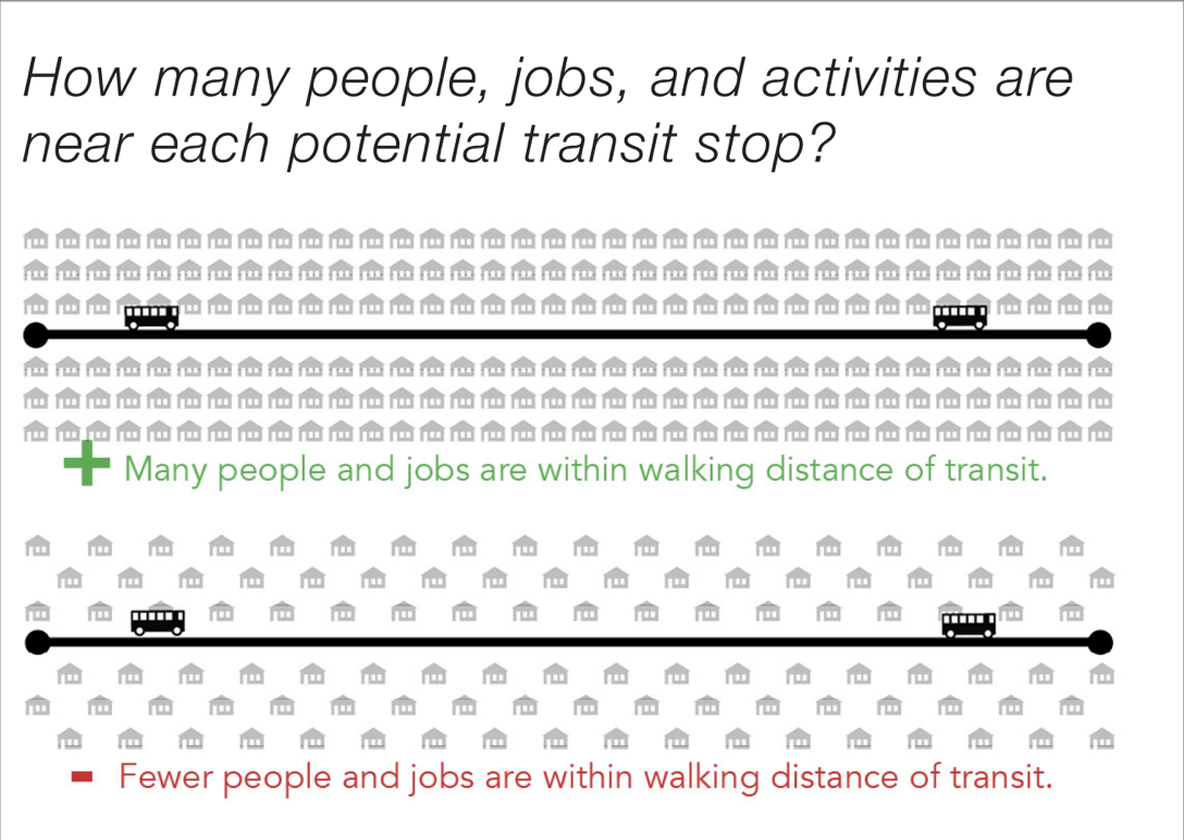 Last summer’s COA presentation, dubbed “The Choices Report,” stresses the need for transit to be surrounded by some measure of density. More housing near stops means more potential riders.