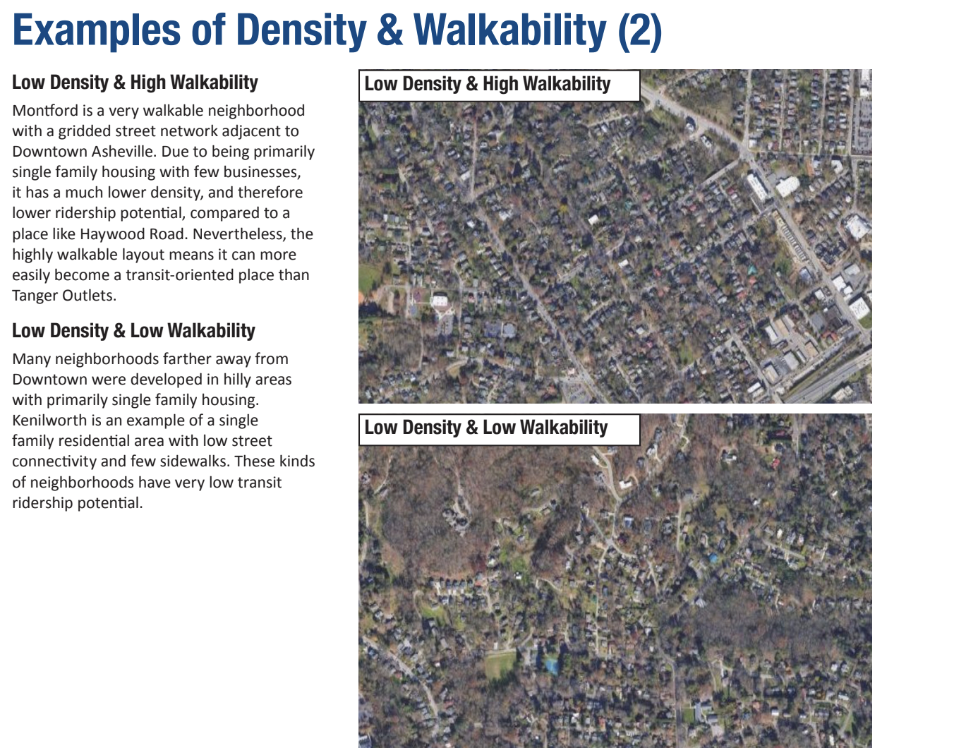 Consider bus lines 2 or 3 on the image at the top of this page, in the mockup of what a slimmed down, frequency-focused map might look like. (These are the lines in orange.) More infill housing and more housing type diversity in East West Asheville, or Falconhurst, or Chestnut Hills, or Five Points, would all create more potential for increased transit ridership.